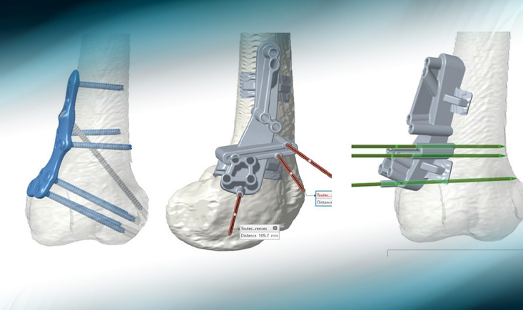 1 - a femoral derotation osteotomy of 14° thanks to a personalized cutting guide (PSI-NEWCLIP).